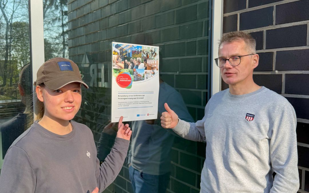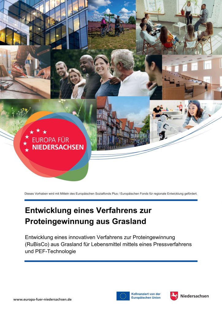 Como parte del programa de financiación „Europa para Baja Sajonia“, cofinanciado por el Fondo Social Europeo Plus y el Fondo Europeo de Desarrollo Regional, SEGLER está colaborando con el Instituto Alemán de Tecnología Alimentaria (DIL) en Quakenbrück en un proyecto de investigación sobre la obtención de proteínas a partir de pastizales.